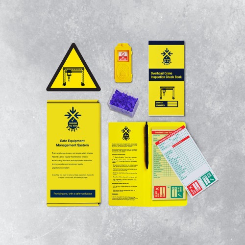 Each kit comes in a sturdy highly visible box which is ideal for storing used checkbooks for management records. The kit contains 50 individual (one for each week) inspections relating to the components and structural integrity of a overhead crane. Duplicate carbon copies of the completed inspection checklists are retained in the book for management records. The book also includes useful guidance notes to remind operatives what to look for during their inspection. A status tag which when positioned and attached on overhead crane is a ideal way to advise employees when the equipment is "Good to Go" following a pre-use inspection. If a fault is found then the tag can display a "Do Not Use" message to quarantine the equipment until repaired and another inspection deems the overhead crane is safe for use. A useful wallet and pen which securely holds the book and pen to protect it from general wear and tear whilst providing a perfect writing surface whilst on the move. The kit also provides 100 tamper evident seals which provide a visual indicator that the checklist insert is in place and verified.